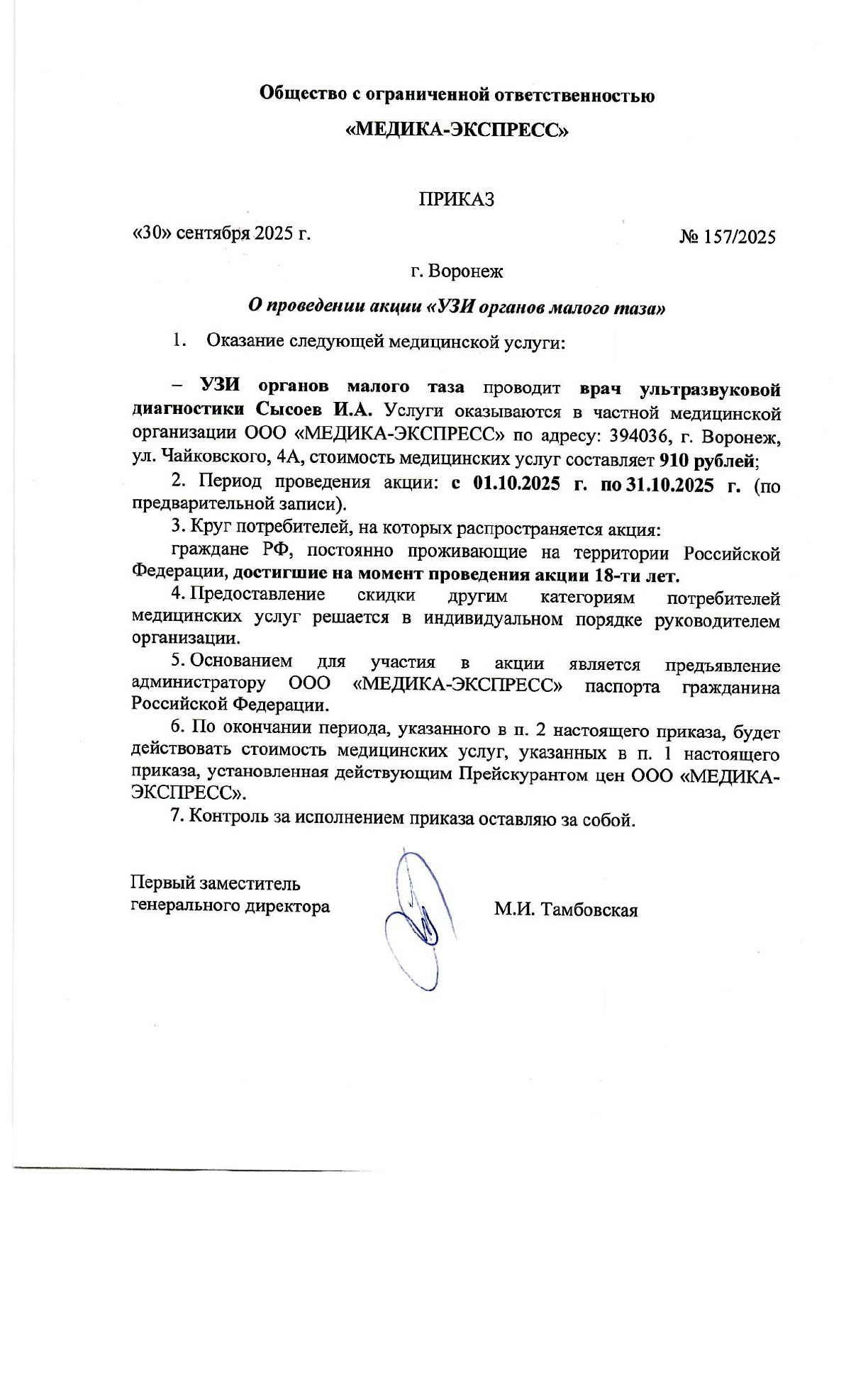 Приказ - О проведении акции "УЗИ органов малого таза"
