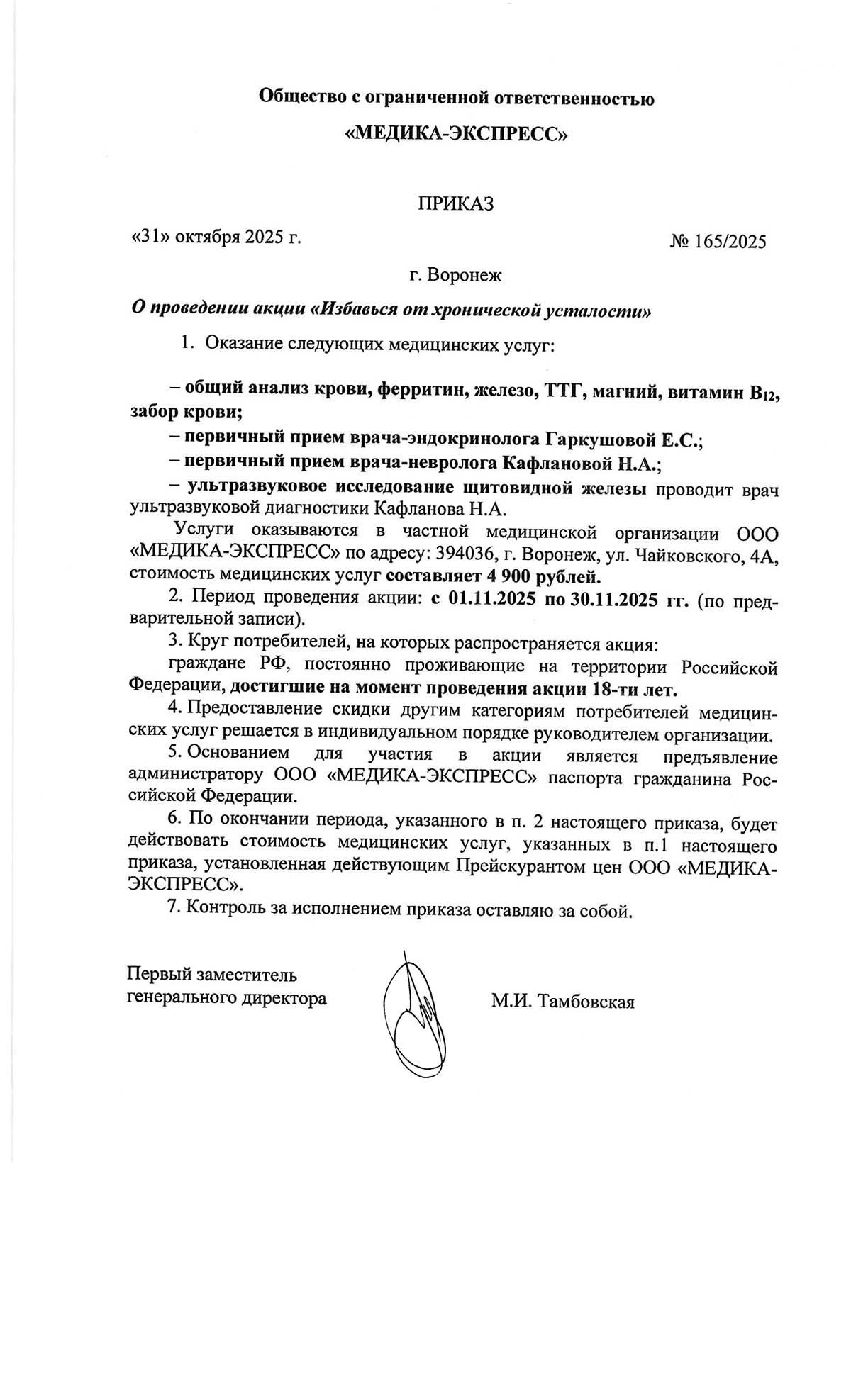 Приказ - О проведении акции "Избавься от хронической усталости"