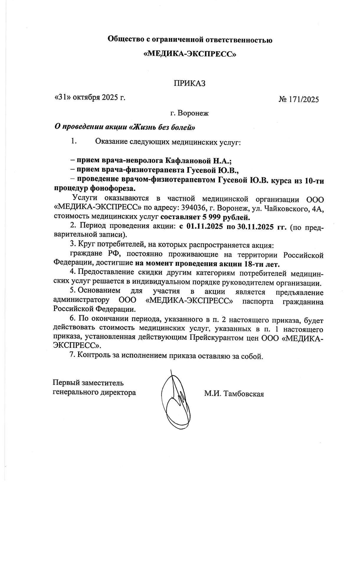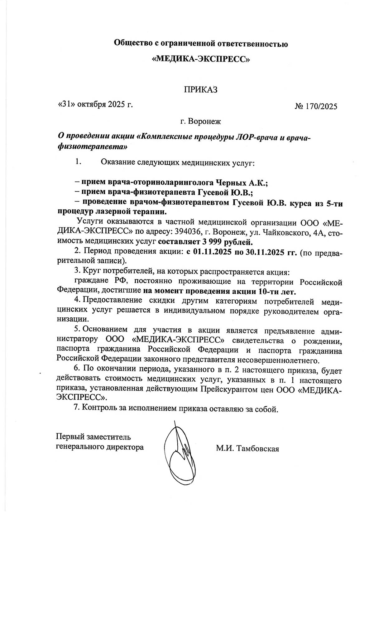 Приказ - О проведении акции "Комплексные процедуры ЛОР-врача и врача физиотерапевта"