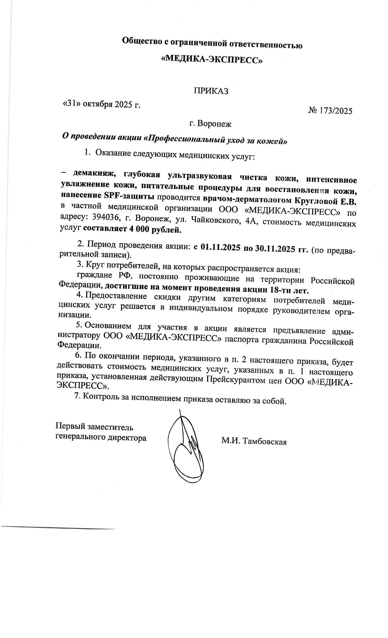 Приказ - О проведении акции "Профессиональный уход за кожей"